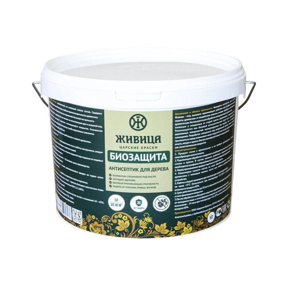 "Биозащита антисептик" для дерева Живица - гель высокого проникающего действия для профилактической защиты древесины от воздействия плесени, синевы, грибков и насекомых-древоточцев.