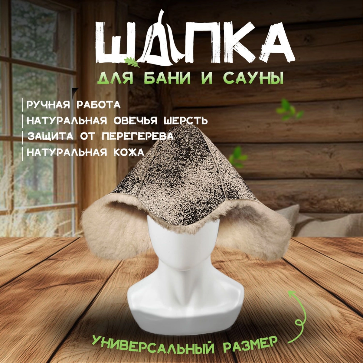 Шапка для бани и сауны. Шапка из кожи и шерсти овцы необходима для защиты головы от перегрева и волос от сухости и ломкости, ведь горячий пар всегда поднимается вверх. Качественная шапка в баню мужская женская позволит вам дольше оставаться в парной. Шапки для бани– самый надежный вариант из всех. Для бани шапка, более износостойки, а главное – обладают впечатляющими теплоизоляционными свойствами, по сравнению с шапачками для бани из других материалов. Благодаря структуре натуральной шерсти банная шапка долго остаётся сухой при повышенной влажности и не даёт возможности для развития грибковых и бактериальных заболеваний. Наши шапки в баню изготавливается вручную из натуральной овчины. Универсальный размер подойдет как для мужчин, так и для женщин, а также подчеркнет вашу индивидуальность. Банные шапки идеальный подарок на 23 февраля, 8 марта.