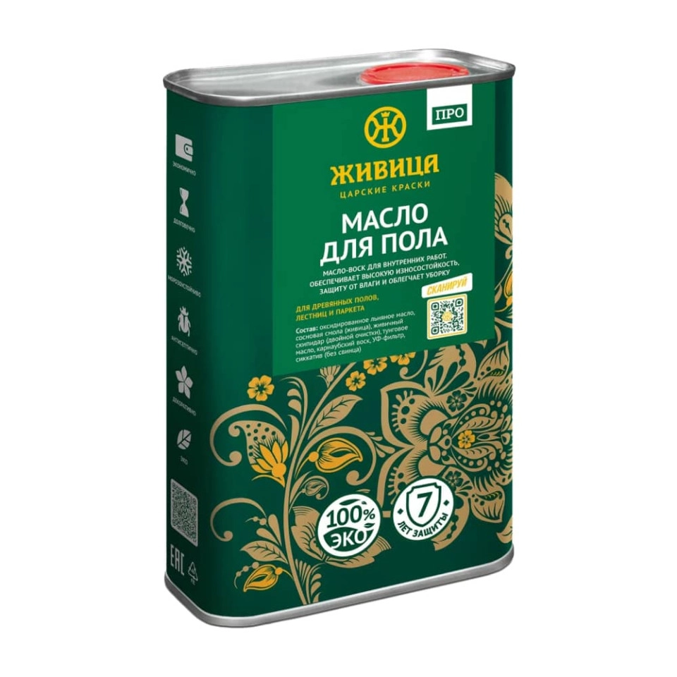 Для покраски деревянного пола, паркета, лестниц, пробковых и других напольных покрытий. Масло для полов с воском обладает высокой степенью истираемости. В составе содержится карнаубский воск и тунговое масло. Цветная пропитка для полов применяется для покраски пола для внутренних работ, 100% натуральный продукт собственного производства на основе льняного масла.