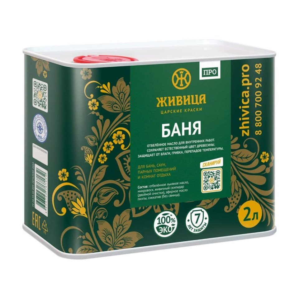 Масло по дереву для бани и сауны «Баня ПРО» Живица 2 л