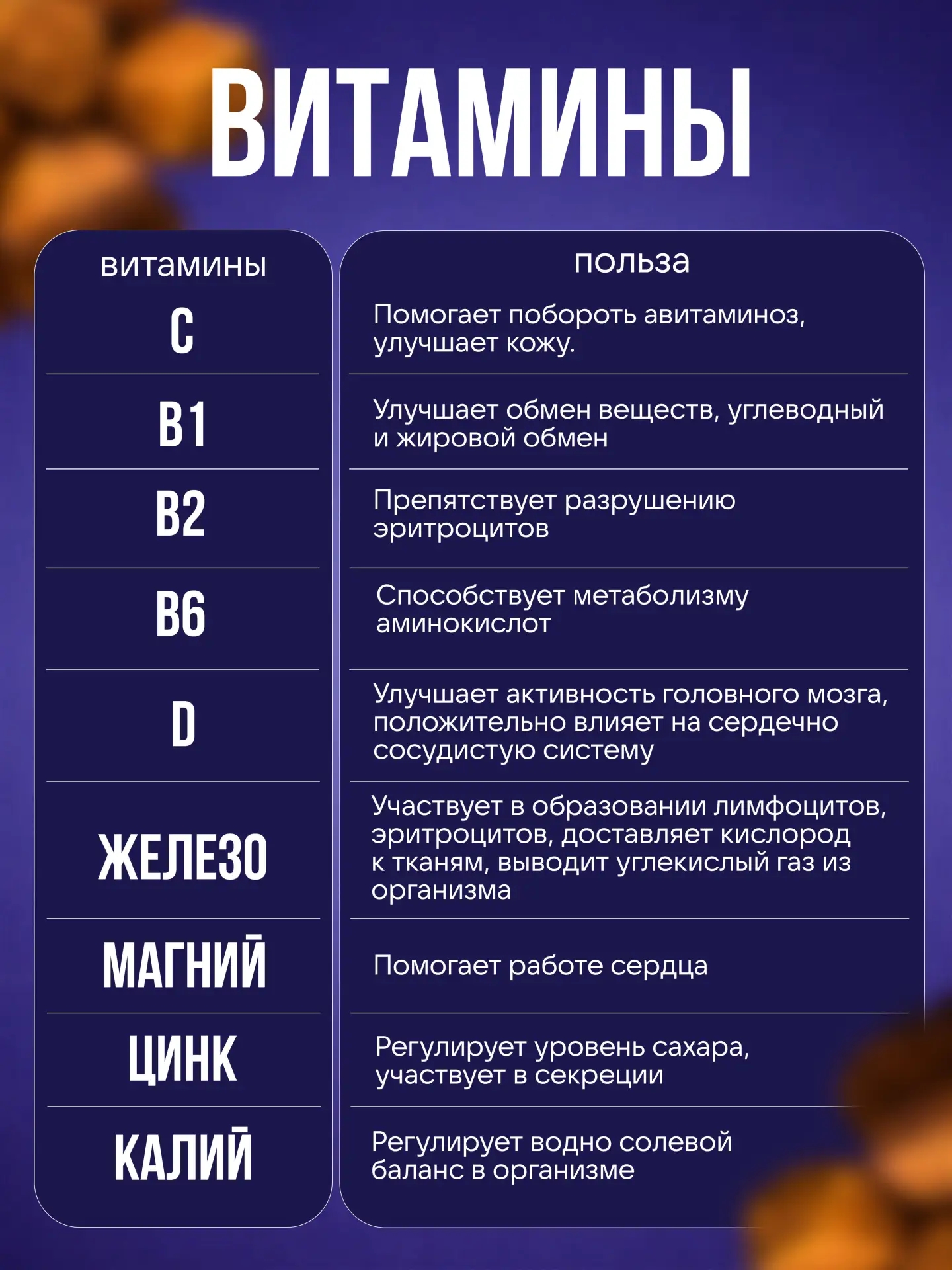 - Микроэлементы (марганец, калий, цинк) - Общеукрепляющее действие
