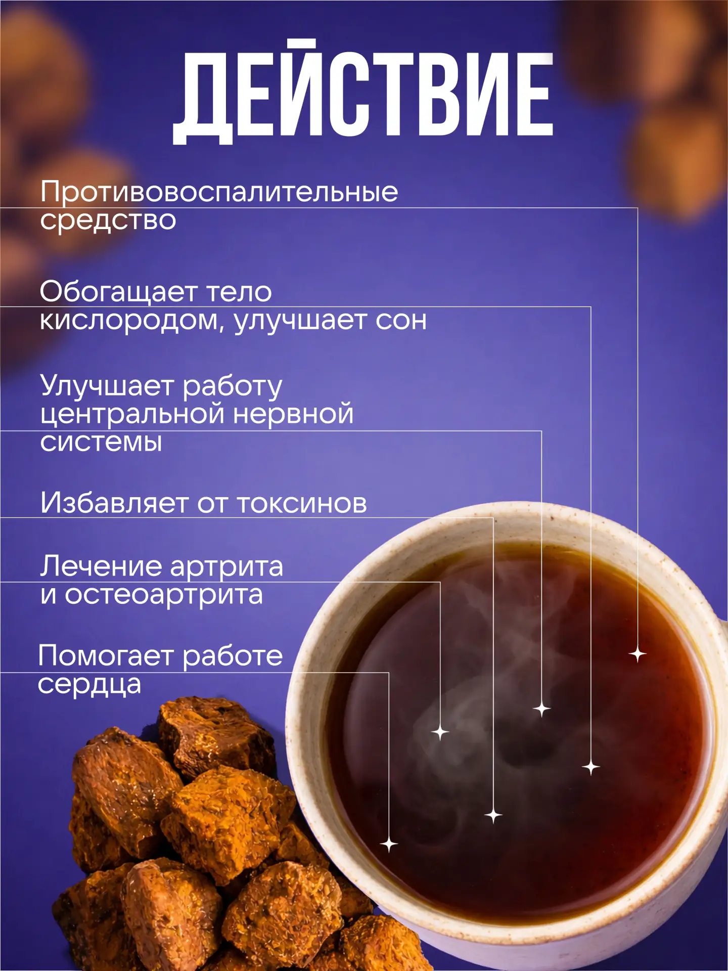 Чага содержит комплекс биологически активных веществ: