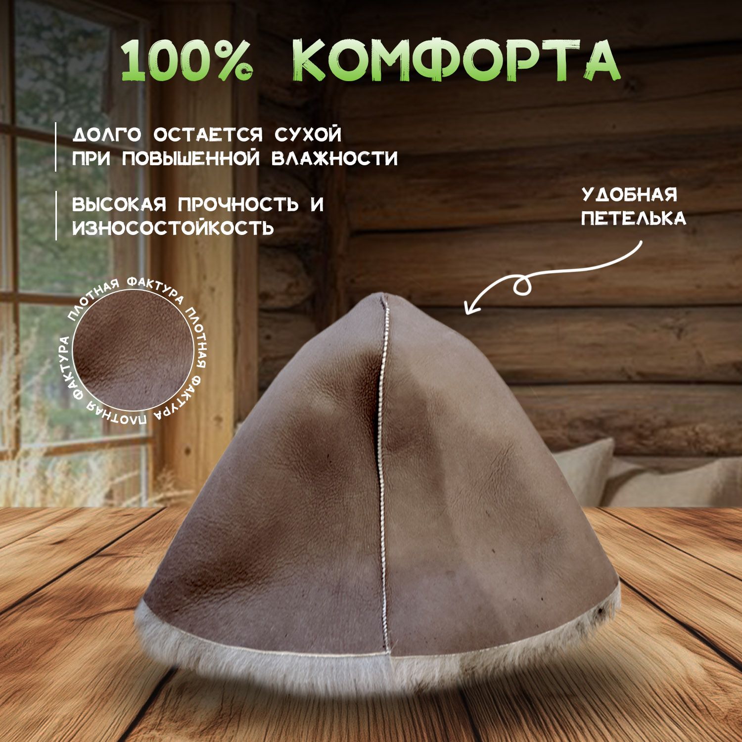 Шапка для бани и сауны. Шапка из кожи и шерсти овцы необходима для защиты головы от перегрева и волос от сухости и ломкости, ведь горячий пар всегда поднимается вверх. Качественная шапка в баню мужская женская позволит вам дольше оставаться в парной. Шапки для бани– самый надежный вариант из всех. Для бани шапка, более износостойки, а главное – обладают впечатляющими теплоизоляционными свойствами, по сравнению с шапачками для бани из других материалов. Благодаря структуре натуральной шерсти банная шапка долго остаётся сухой при повышенной влажности и не даёт возможности для развития грибковых и бактериальных заболеваний. Наши шапки в баню изготавливается вручную из натуральной овчины. Универсальный размер подойдет как для мужчин, так и для женщин, а также подчеркнет вашу индивидуальность. Банные шапки идеальный подарок на 23 февраля, 8 марта.