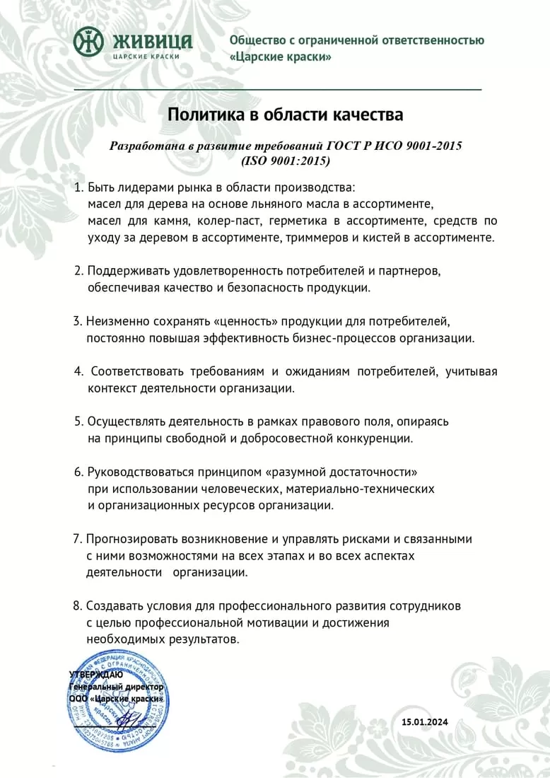Наши масла безопасны для здоровья человека и окружающей среды, что подтверждается соответствующими сертификатами.